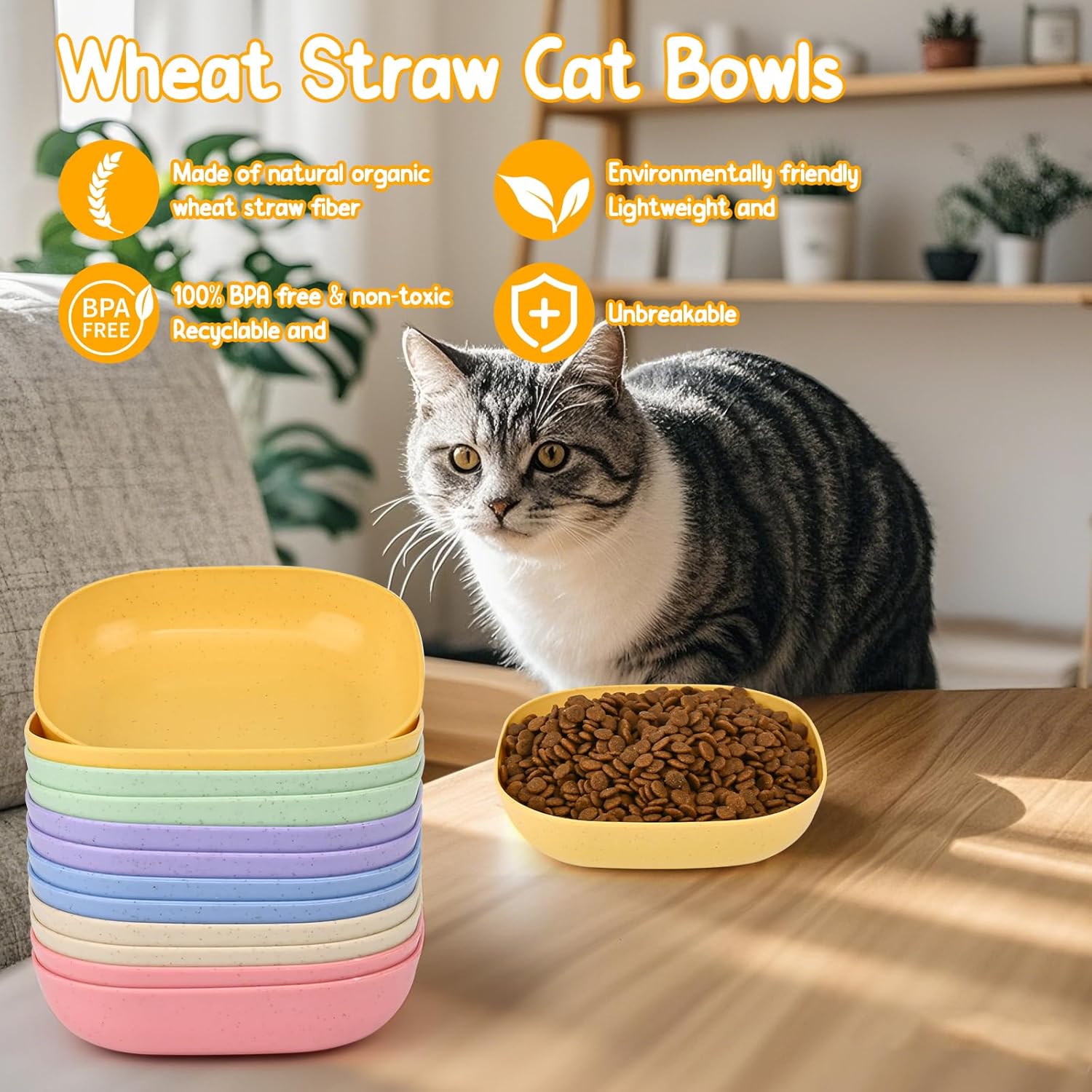 - Wheat Straw Cat Bowls: The cat food bowl is made of quality wheat straw fiber, starch and pp material, sturdy and not easy to break, safe and reliable for daily use.