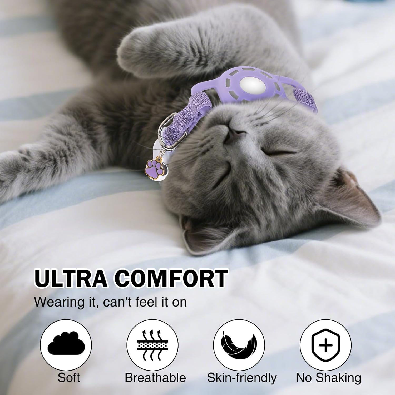 This breakaway cat collar offers a seamless blend of security and comfort. The elastic design stretches to accommodate unexpected movements, reducing the risk of entanglement, while the built-in AirTag holder ensures reliable GPS tracking. Its lightweight build and adjustable fit (9-12 inches) make it ideal for kittens and active cats. The vibrant purple hue adds a touch of style without compromising visibility. Though the breakaway mechanism is sturdy, it opens effortlessly under pressure—a critical safety feature. Durability holds up well against playful tugging, though frequent use may require periodic checks. At an affordable price, it’s a must-have for pet owners prioritizing both peace of mind and feline comfort.