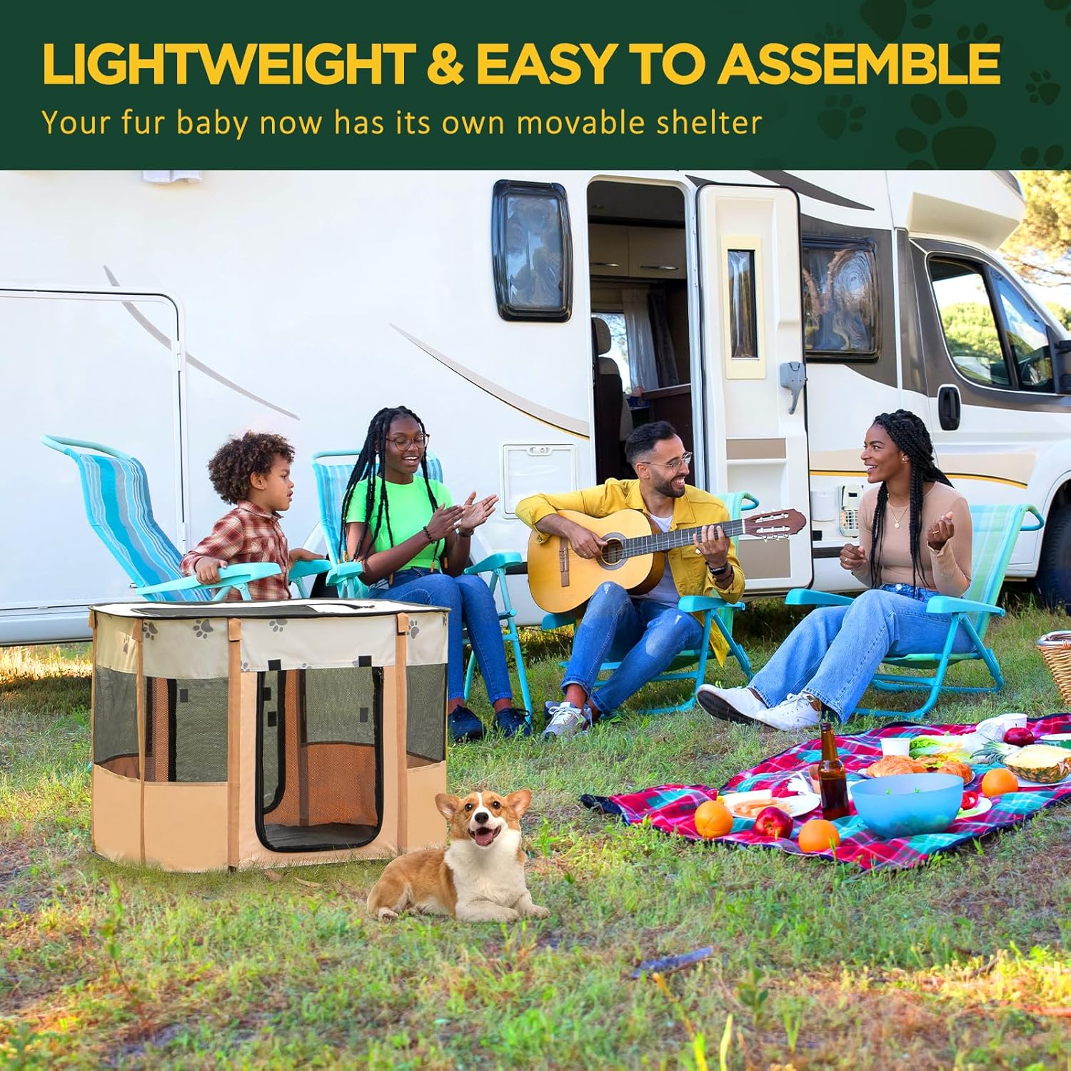 - A multipurpose playpen works as a pet house, delivery room, or shade tent for outdoor travel and camping