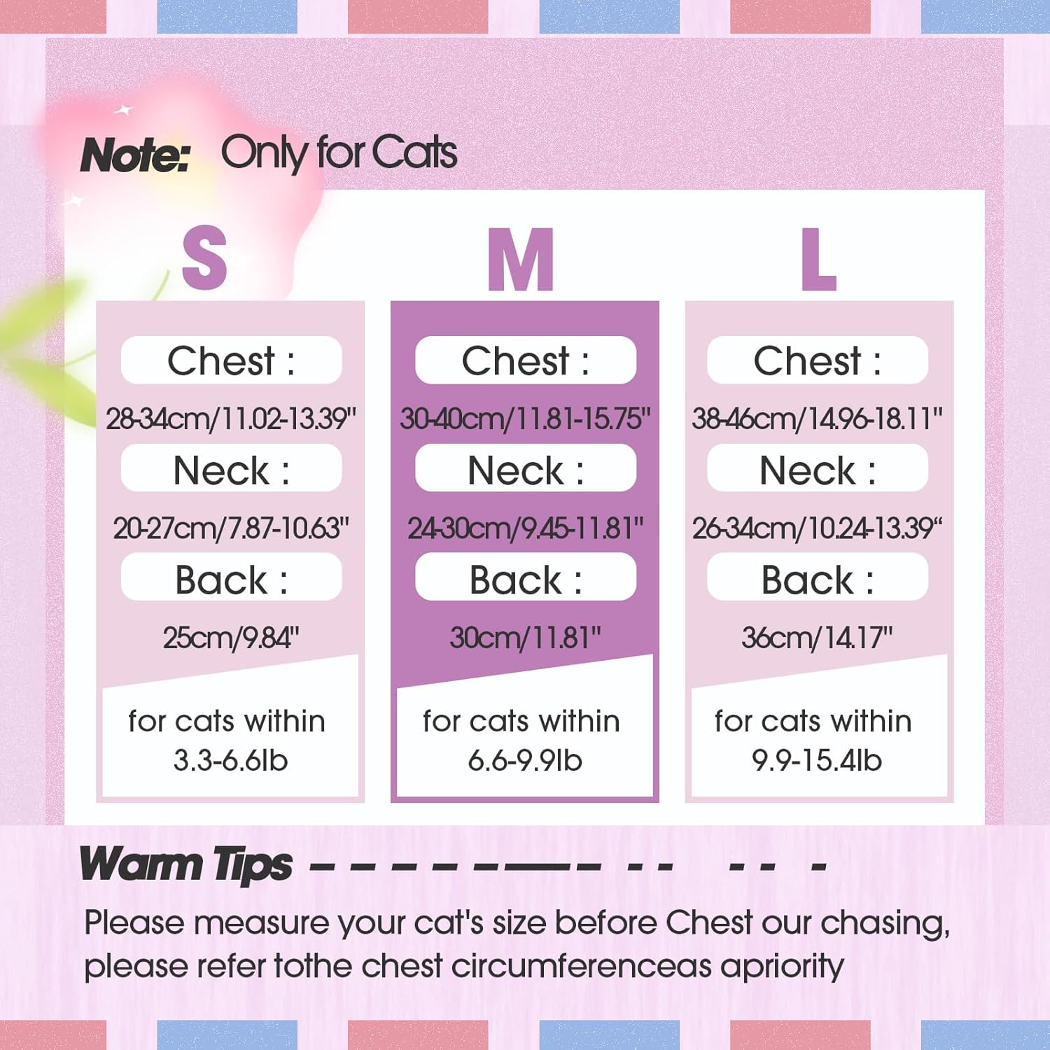 • Note: This cat recovery suit is suitable for small, medium and large cat. Please measure the chest girth, neck girth, and back length of pets before ordering. Please do not guess the size info