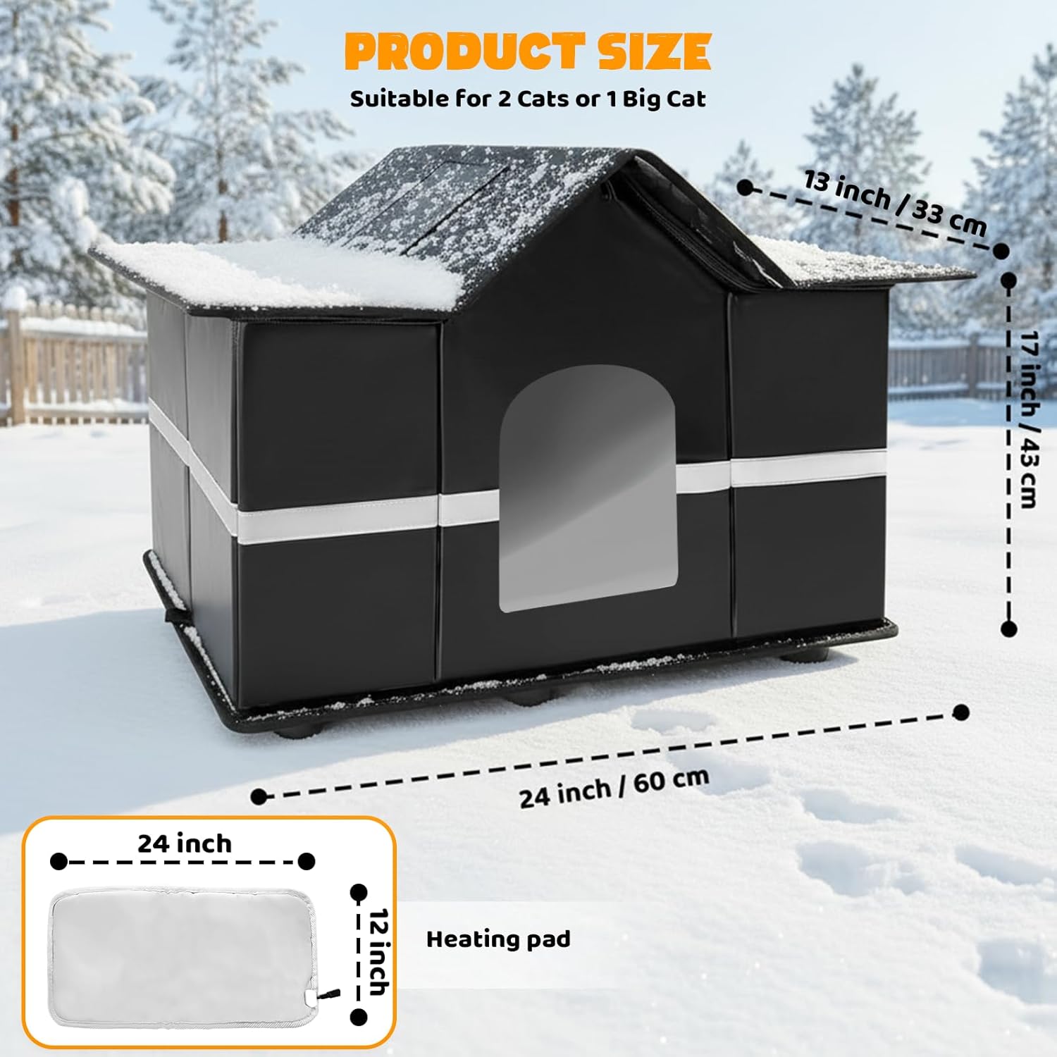 - Spacious Interior for Multiple Cats Without Crowding: The generous interior of this large heated outdoor cat house weatherproof comfortably fits multiple cats. Designed as a multi-cat cat house heated, it offers both privacy and companionship—perfect as a roomy heated cat shelter or a shared insulated cat heated house outdoor for colony caregivers