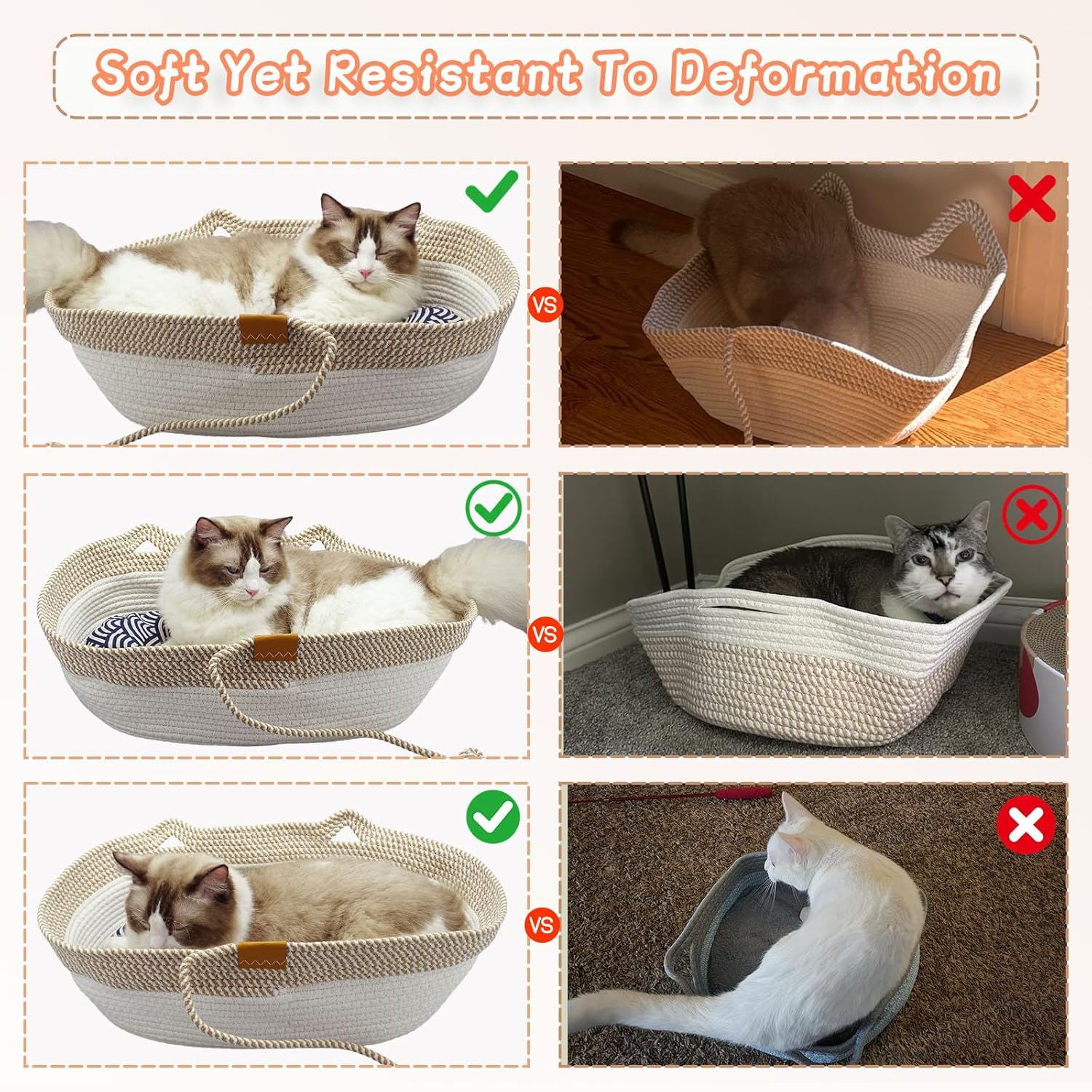 - 【Preferred Material】: Pet beds for small dogs are made of high quality cotton rope woven on both sides, soft and flexible material, wear-resistant and scratch-resistant and not easy to deform, and there are winter and summer replacement pads, which can be used all year round.