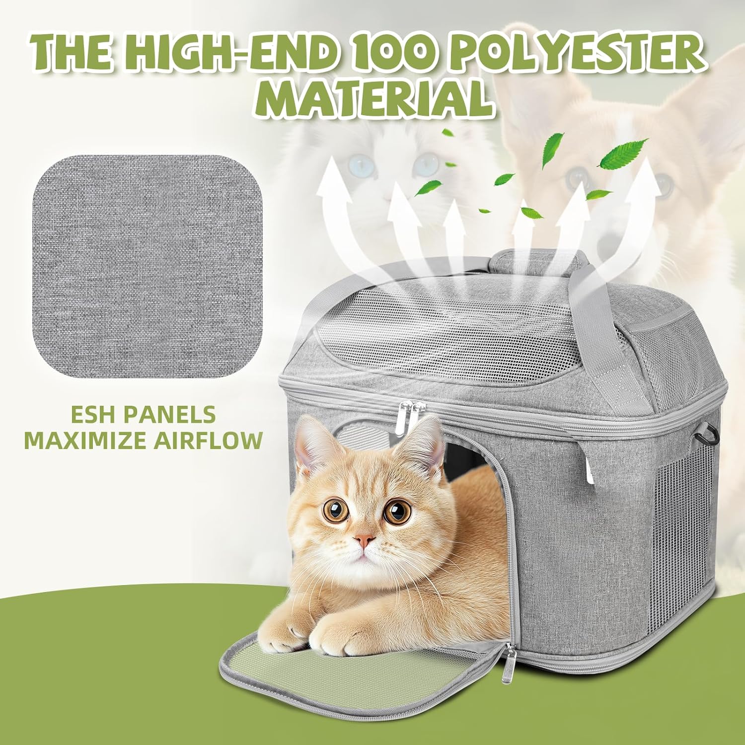 - VENTILATION SYSTEM: Pet carrier comes with Durable anti-scratch mesh panels boost airflow significantly, ensuring a constant supply of fresh air while giving your pet clear views to stay calm.