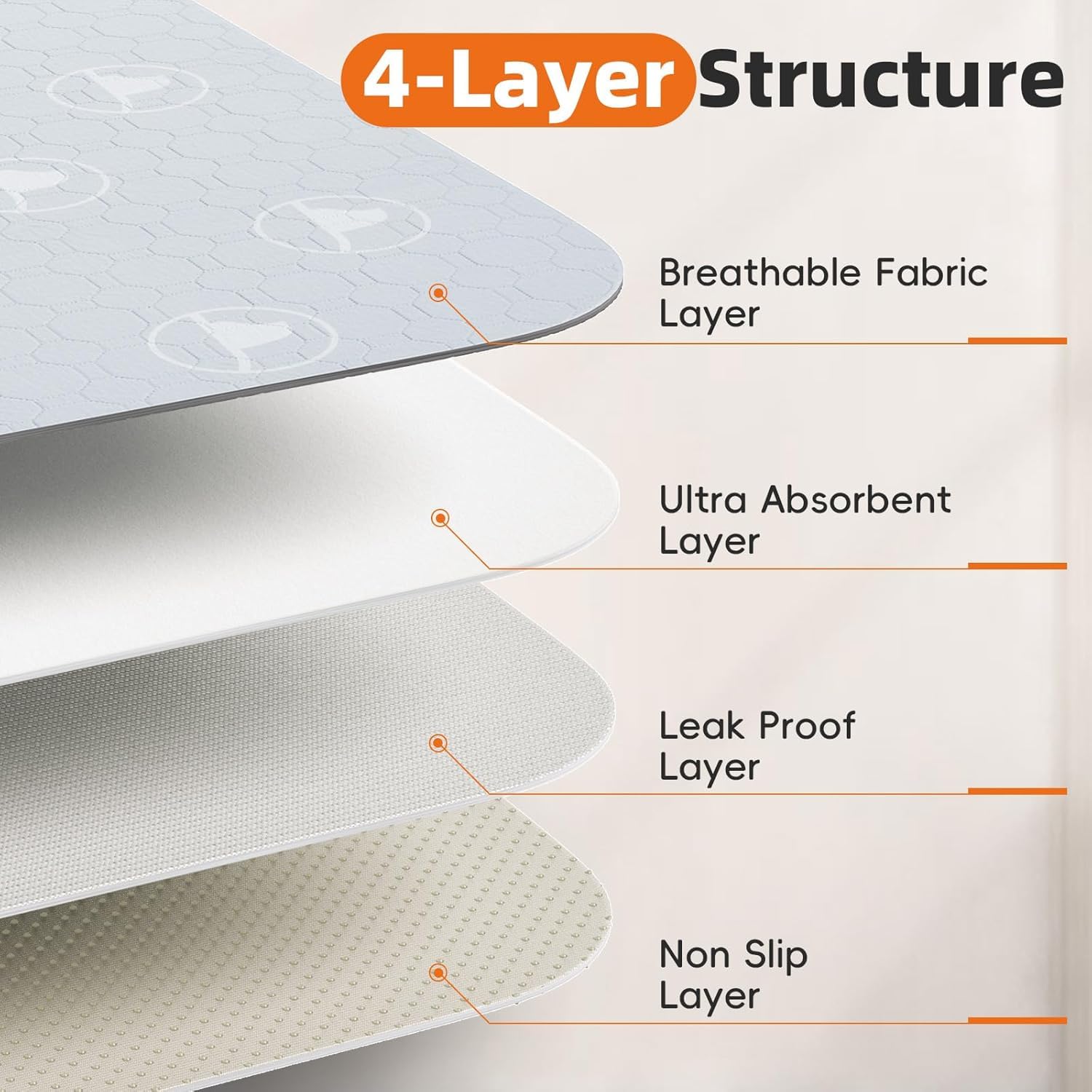 - 4-Layer Protection System: Breathable top layer guides liquid to the 10 mins quick-dry core, leak-proof barrier prevents seepage, and non-slip base stays in place. Shield floors, furniture, and car interiors from accidents